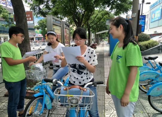 通過三天的調(diào)查,志愿者們對問卷進(jìn)行了分類整理統(tǒng)計,將市民提出的意見建議以及問卷中每個問題選項所占的比例進(jìn)行了整合分析總結(jié)。接受調(diào)查的市民有百分之六十為18-30歲的青年。絕大部分人在短途出行時,會選擇公共自行車出行,他們認(rèn)為城市公共自行車便捷、靈活。大多數(shù)市民會在購物及上下班時使用公共自行車。與此同時,一些沒使用過公共自行車的市民也表示對公共自行車有濃厚的興趣,在調(diào)查問卷過程中向志愿者們進(jìn)行詢問。