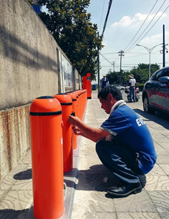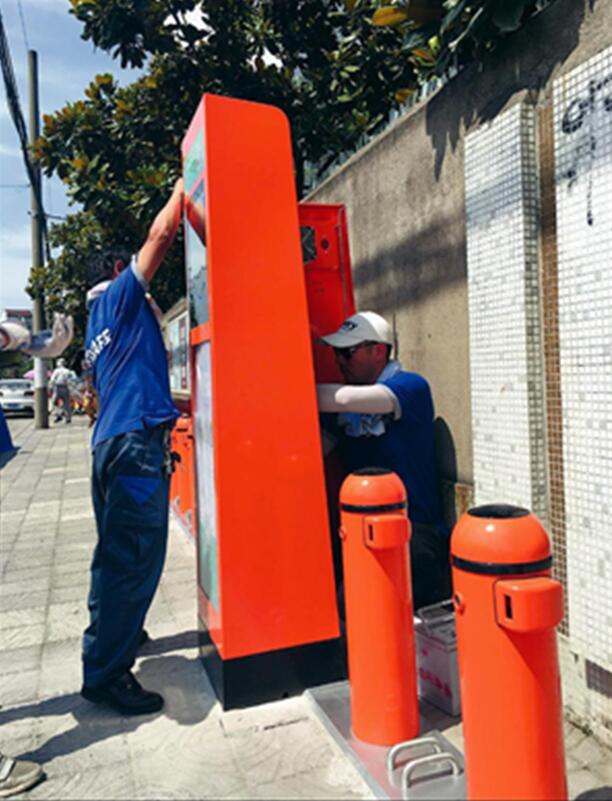 車輛安全卸下后,工人們來(lái)到花溪苑一區(qū)門(mén)口站點(diǎn)安裝調(diào)試新的機(jī)柜、鎖柱,并將新車一輛輛上軌,擺放整齊。為了不影響附近居民的使用,工作人員搶時(shí)間、戰(zhàn)高溫,基本做到了當(dāng)天拆當(dāng)天安裝,在24小時(shí)內(nèi)恢復(fù)正常使用。