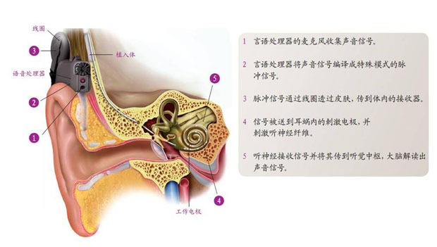人工耳蝸(Cochlear Implant)是一種電子裝置,由體外言語處理器將聲音轉(zhuǎn)換為一定編碼形式的電信號,通過植入體內(nèi)的電極系統(tǒng)直接興奮聽神經(jīng)來恢復(fù)或重建聾人的聽覺功能。近年來,隨著電子技術(shù)、計算機技術(shù)、語音學(xué)、電生理學(xué)、材料學(xué)、耳顯微外科學(xué)的發(fā)展,人工耳蝸已經(jīng)從實驗研究進入臨床應(yīng)用?,F(xiàn)在全世界已把人工耳蝸作為治療重度聾至全聾的常規(guī)方法。
