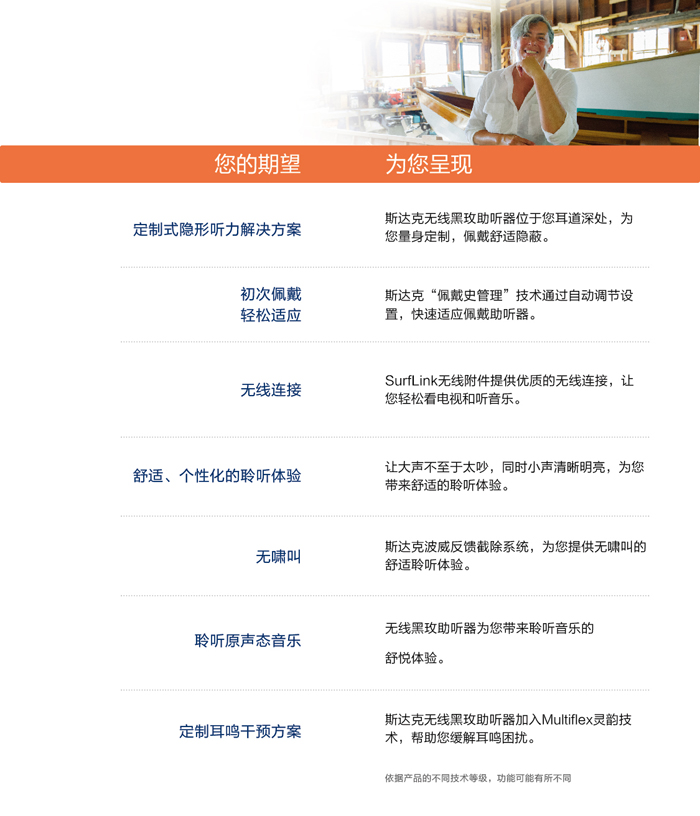 更新時(shí)間:2019-11-12 瀏覽次數(shù):331次您的生活環(huán)境是復(fù)雜多變還是相對單一,玫系列都有一款助聽器能夠滿足您的生活方式.斯達(dá)克提供外觀圓滑,種類齊全的隱型助聽器.根據(jù)您的聽力需求和外觀要求,選配師在為您推薦具體的一款助聽器前,需要考慮諸多因素.因此了解不同類型助聽器間的區(qū)別,將幫助您和您的選配師更好的根據(jù)您的需要作出正確的選擇